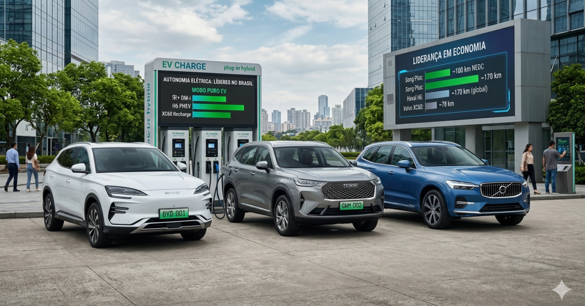 O BYD Song Plus segue como o híbrido plug-in mais vendido do país, impulsionado pela sua tecnologia DM-i. De acordo com a fabricante, o modelo equipado com bateria de dezoito ponto três quilowatts-hora oferece uma autonomia de cerca de cem quilômetros no ciclo NEDC, o que se traduz em aproximadamente sessenta e oito quilômetros no ciclo oficial do Inmetro. Segundo o portal Motor1, essa capacidade permite que a maioria dos proprietários utilize o veículo como um carro 100% elétrico durante a semana de trabalho, reservando o uso da gasolina apenas para situações de alta demanda de força ou trajetos rodoviários.
