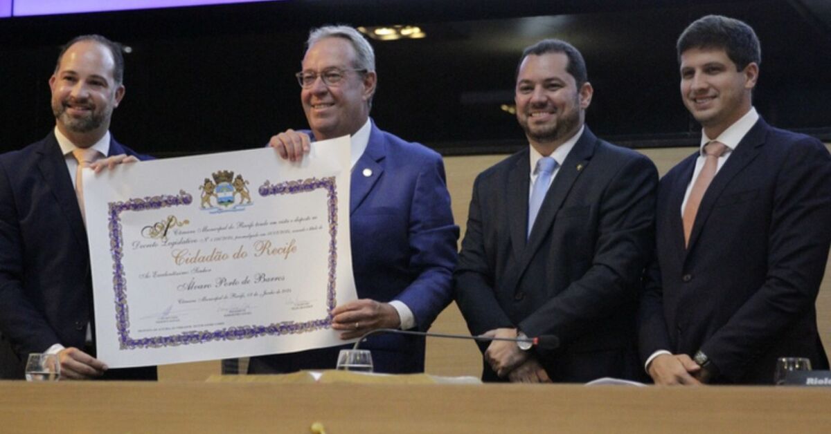 O presidente da Assembleia Legislativa de Pernambuco (ALEPE), Álvaro Porto de Barros, é o mais novo Cidadão do Recife. Ele recebeu o Título em reunião solene realizada na noite desta segunda-feira, 3 de junho, numa iniciativa do vereador Victor André Gomes (PV).