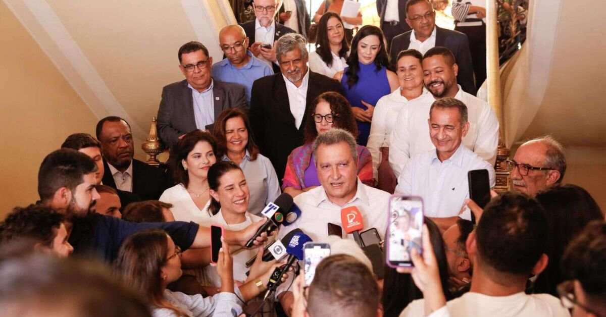 A governadora Raquel Lyra coordenou a reunião com a presença da vice Priscila Krause e dos ministros da Casa Civil, Rui Costa; Ciência, Tecnologia e Inovação, Luciana Santos; e da Integração e Desenvolvimento Regional, Waldez Góes.