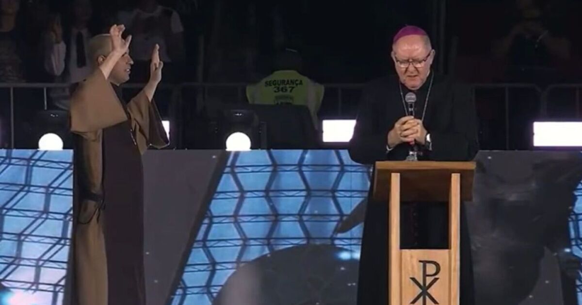 Ao lado do Frei Gilson, o bispo Dom Adair José Guimarães fez um momento de oração durante o evento católico Desperta Brasil, realizado no Estádio Nacional Mané Garrincha, em Brasília (DF), na noite do sábado, 30 de agosto.