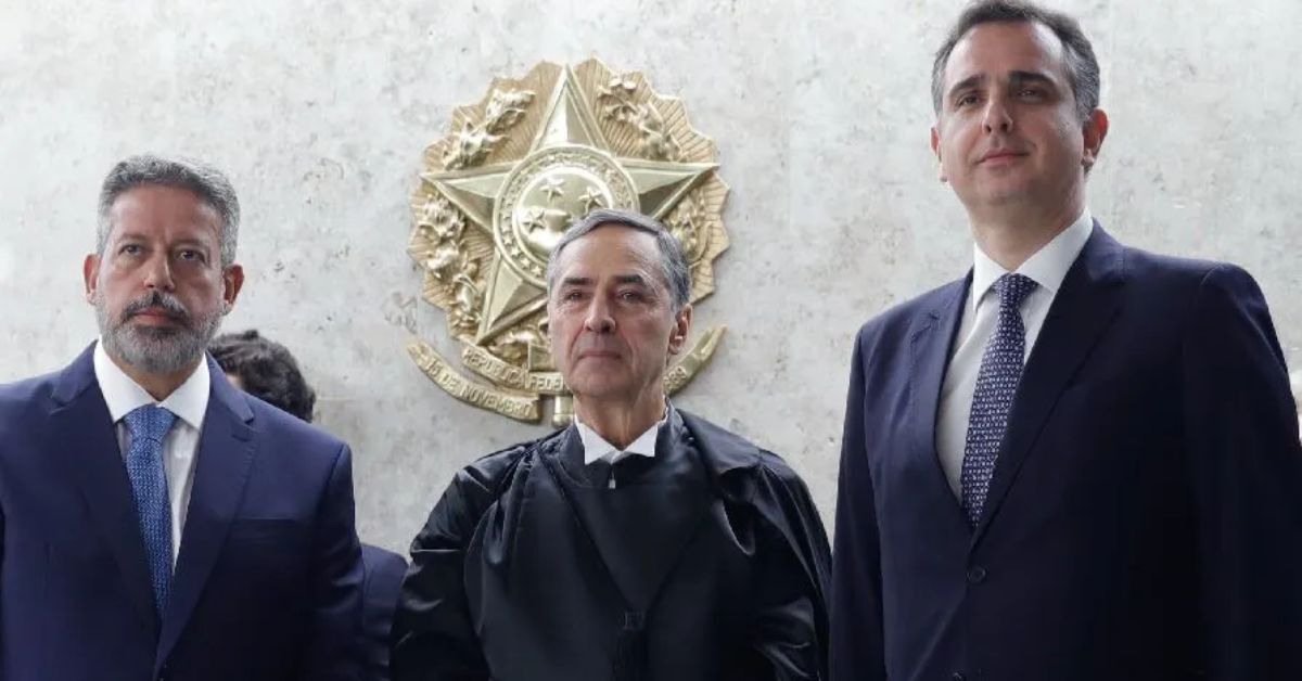 Presidente da Câmara, Arhtur Lira, Presidente do STF, Luís Roberto Barroso e Presidente da Câmara do Senado, Rodrigo Pacheco. Foto: Divulgação/STF