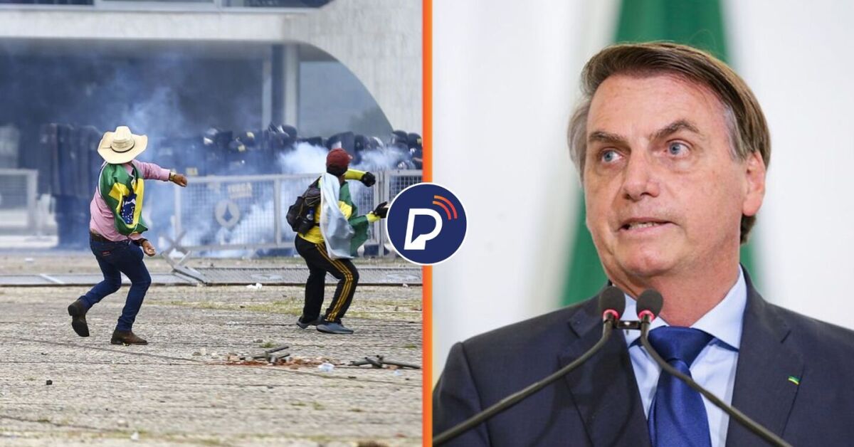 Manifestantes no 8 de janeiro e Bolsonaro. Fotos: Marcelo Camargo/Agência Brasil e Carolina Antunes/PR. Arte: Portal de Prefeitura