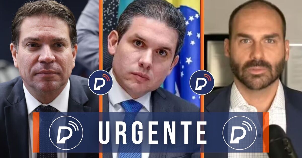 Alexandre Ramagem, Hugo Motta e Eduardo Bolsonaro. Fotos: Ton Molina/STF, Divulgação e Redes Sociais/Reprodução. Arte: Portal de Prefeitura