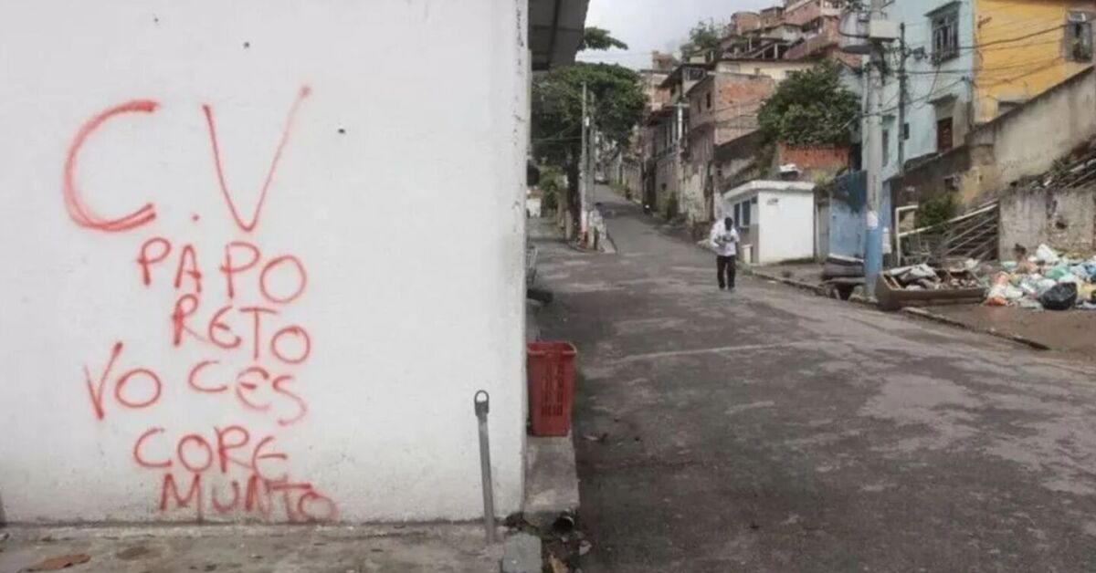 Parede pichada com alerta do Comando Vermelho, na Zona Norte do Rio. Foto: Reprodução