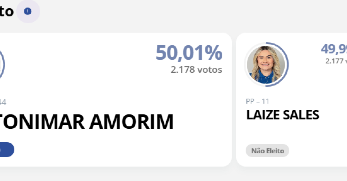 Antonimar recebeu 2.178 votos (50,01%), e Laize 2.177 (49,99%).