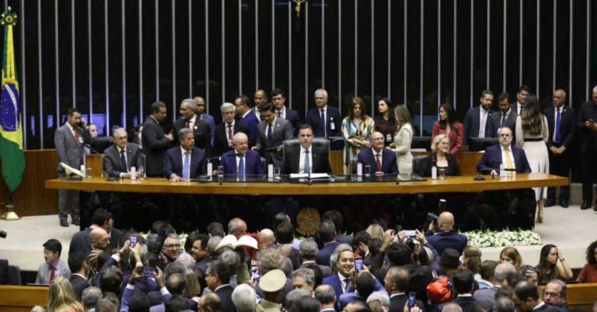 Lula no Congresso ao lado dos ex-presidentes da Câmara e Senado, Arthur Lira e Rodrigo Pacheco. Foto: Gerdan/Câmara dos Deputados