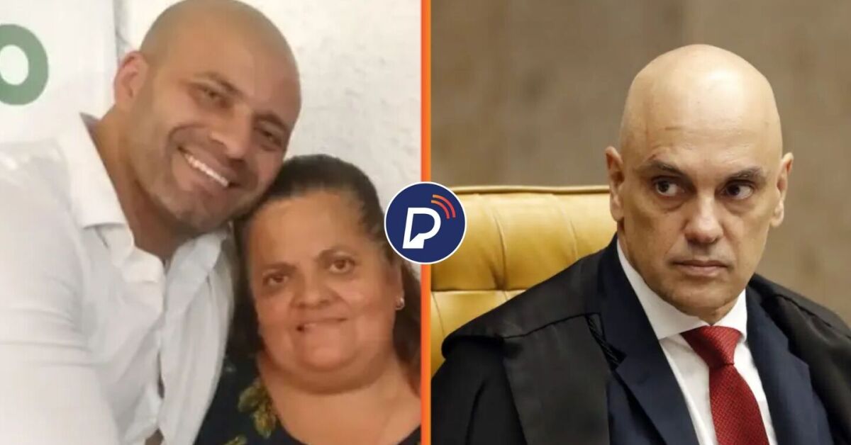 Daniel Silveira junto da mãe e Alexandre de Moraes ao lado. Fotos: Reprodução/Redes Sociais e Bruno Peres/Agência Brasil. Arte: Portal de Prefeitura