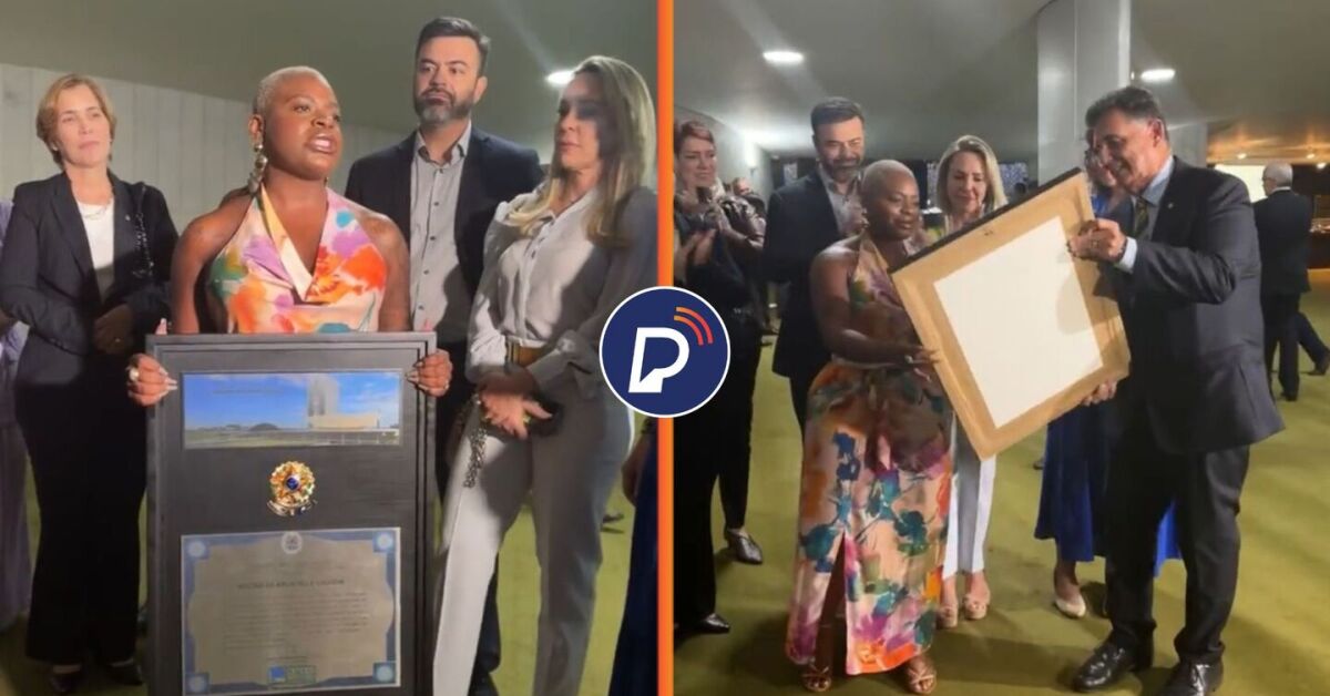 Na tarde desta terça-feira (3), a cantora e influenciadora Jojo Todynho foi homenageada na Câmara dos Deputados com uma moção de aplausos, reconhecendo seu posicionamento político em defesa da segurança pública e da liberdade da população. A homenagem foi entregue pelos parlamentares da Comissão de Segurança Pública e Combate ao Crime Organizado, colegiado que, em sua maioria, é composto por deputados de direita e bolsonaristas.