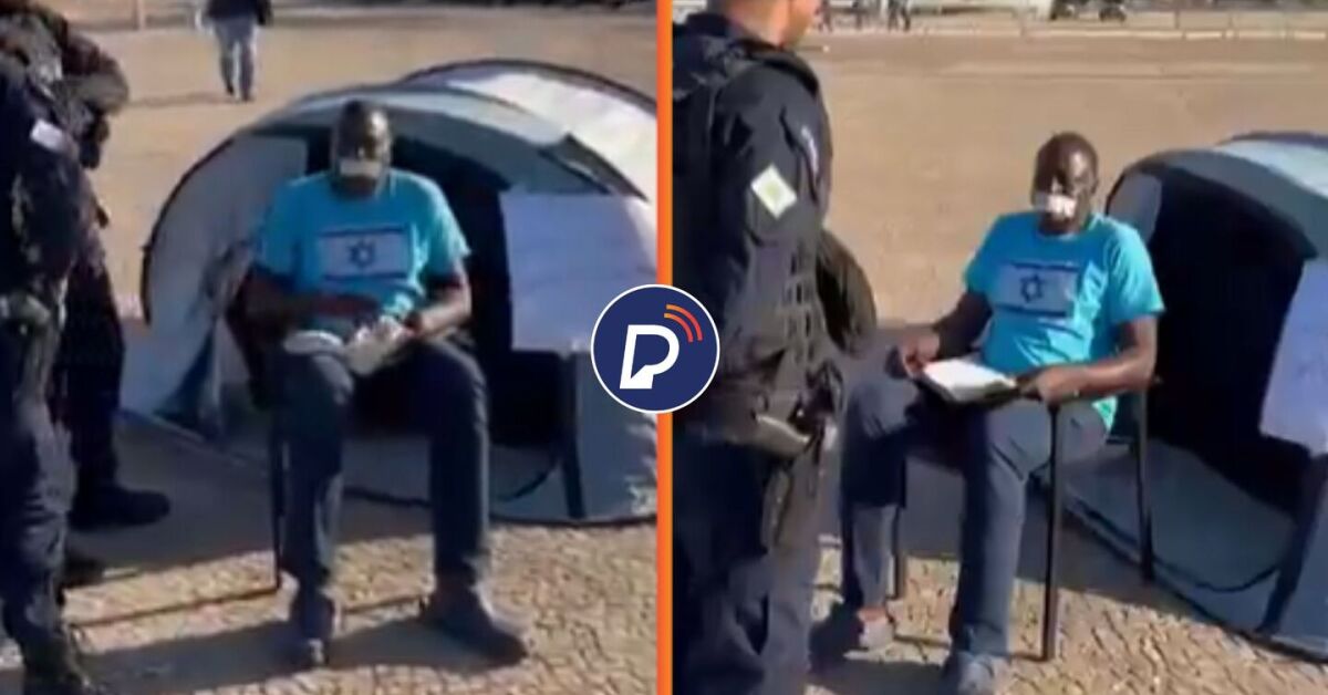 Questionado pela reportagem por que ele resolveu se acampar, ele se manteve calado. Diante de novas perguntas, o deputado reagiu gesticulando negativamente, manifestando o desejo de permanecer sem falar, com a mordaça na boca, enquanto lia o capítulo de Provérbios, do Velho Testamento da Bíblia.