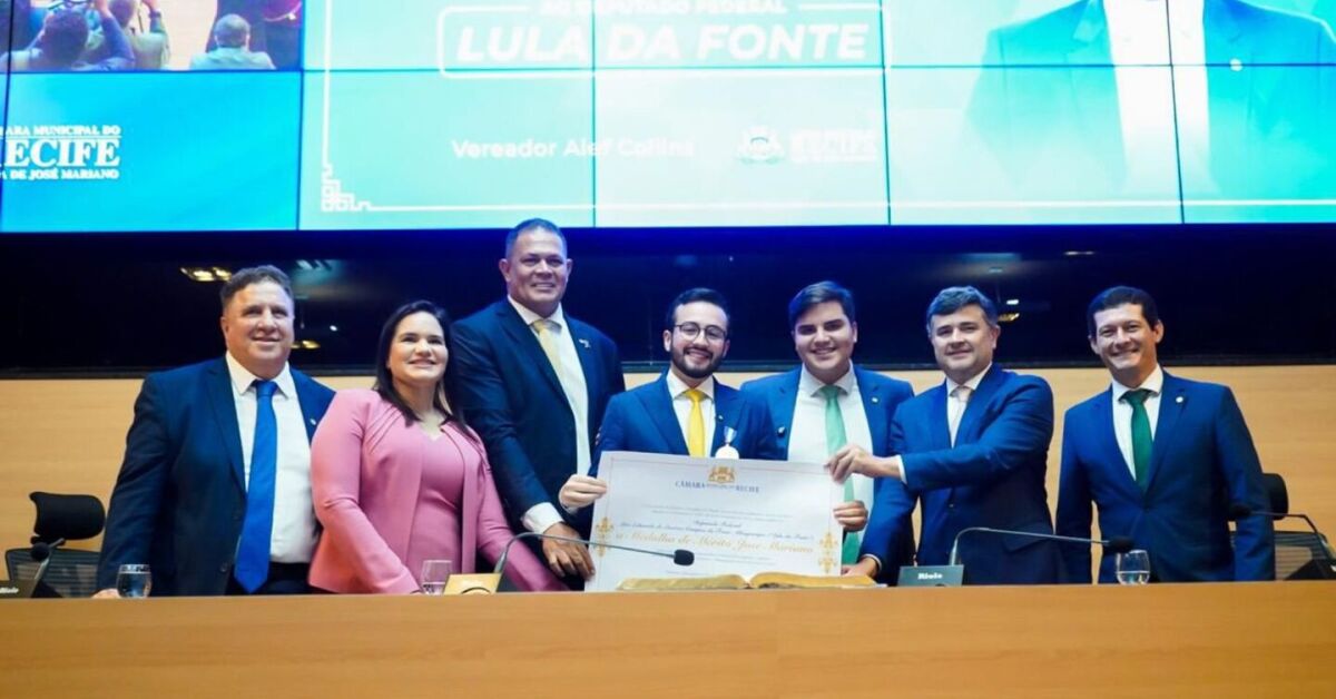 O deputado federal e segundo-secretário da Câmara dos Deputados, Lula da Fonte (PP-PE), foi agraciado com a Medalha de Mérito José Mariano, a mais alta comenda concedida pela Câmara Municipal do Recife.