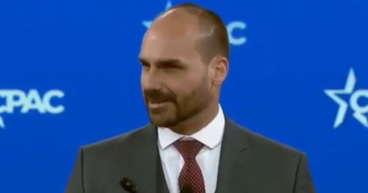 Eduardo Bolsonaro critica Justiça Brasileira: "Um laboratório de censura e autoritarismo judicial" Foto: Reprodução / CPAC