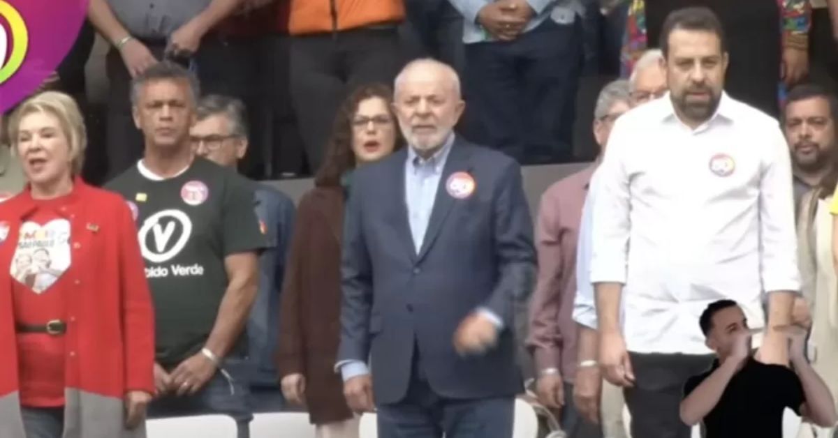 Ato de campanha de Guilherme Boulos teve hino nacional cantado em gênero neutro Foto: Reprodução/ Redes Sociais