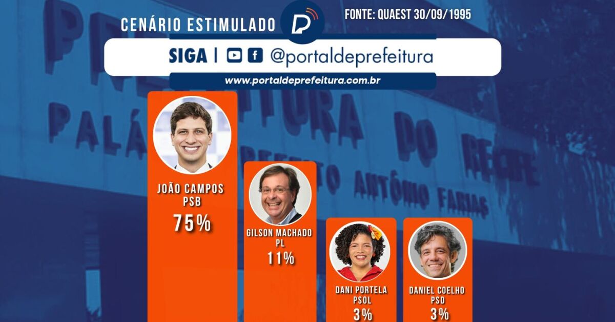 Em segundo aparece Gilson Machado (PL) com 11%. Daniel Coelho (PSD) e Dani Portela (PSOL) aparecem empatados com 3%, enquanto Tecio Teles (Novo) tem 1%