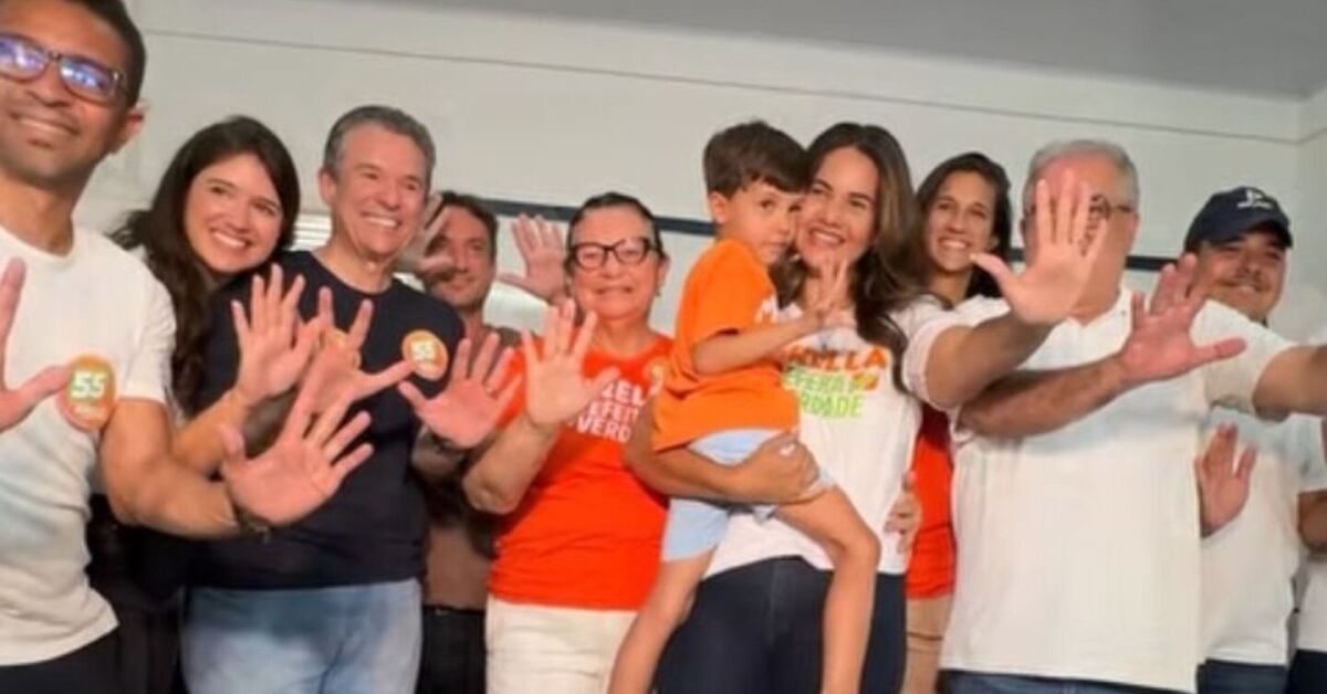 Entre os acompanhantes estavam seu esposo e vereador reeleito de Olinda, Felipe Nascimento (PSD), e o filho do casal, Heitor. A comitiva também contou com a presença de seu candidato a vice-prefeito, Chiquinho (PSD), e do ministro da Pesca e Aquicultura, André de Paula (PSD).