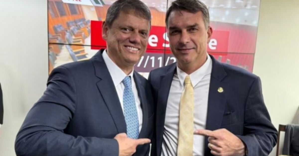 Tarcísio de Freitas e Flávio Bolsonaro. (Foto: Reprodução/ Redes Sociais)