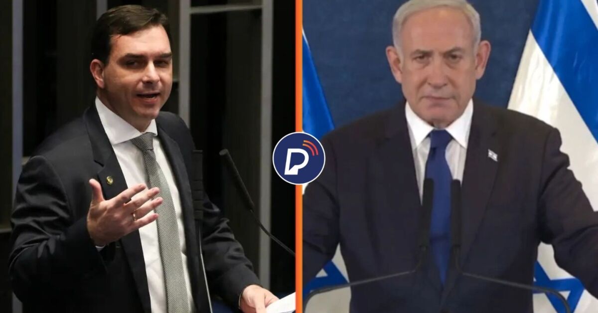 Flávio Bolsonaro e Benjamin Netanyahu. Foto 1:Fabio Rodrigues Pozzebom/Agência Brasil; Foto 2: Reprodução
