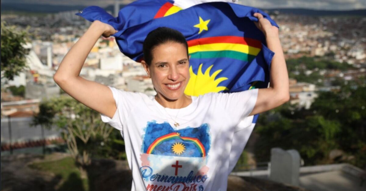 Raquel Lyra segurando a bandeira de Pernambuco. Foto: Yaci Ribeiro/SECOM