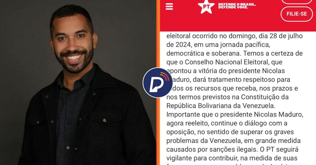 Nesta terça-feira, 30 de julho, em seu perfil da rede social X, o economista Gilberto Nogueira mais conhecido como 'Gil do Vigor', criticou o Partido dos Trabalhadores (PT) por terem parabenizado a reeleição de Nicolás Maduro.