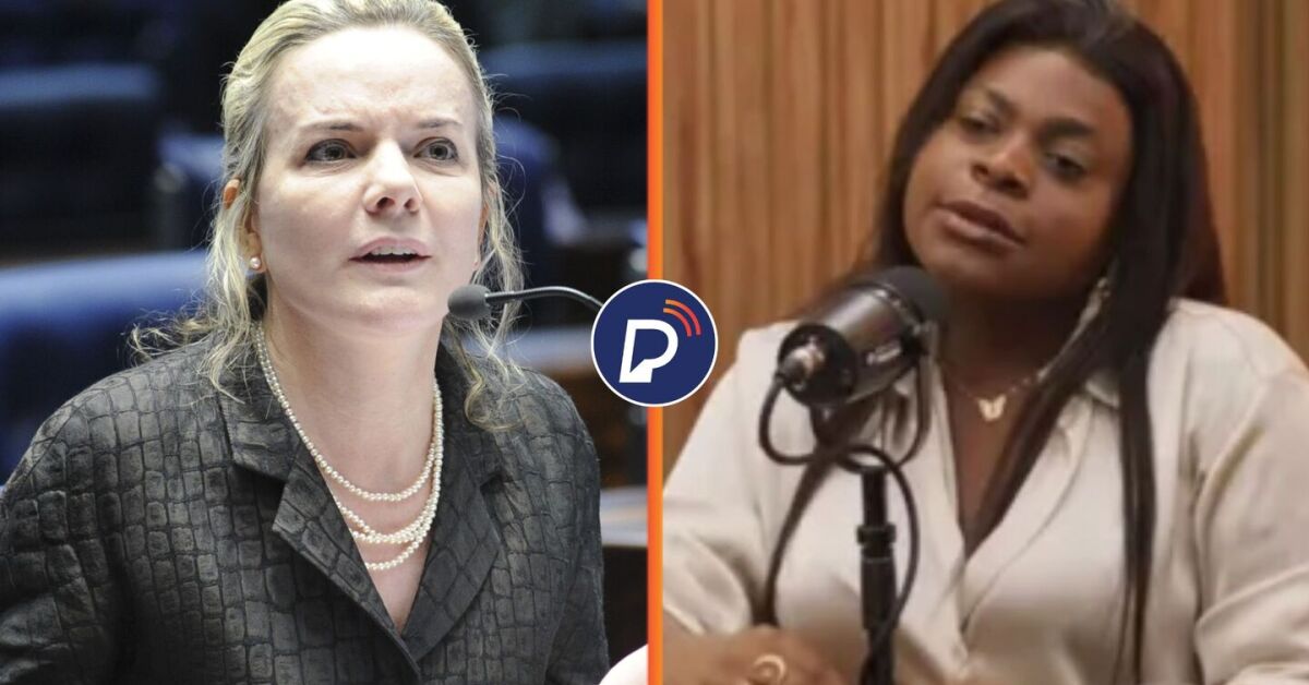Gleisi Hoffmann rebate as declarações de Jojo Todynho sobre proposta do PT: "Mentira deslavada". Foto: Geraldo Magela/Agência Senado e Reprodução/Vídeo