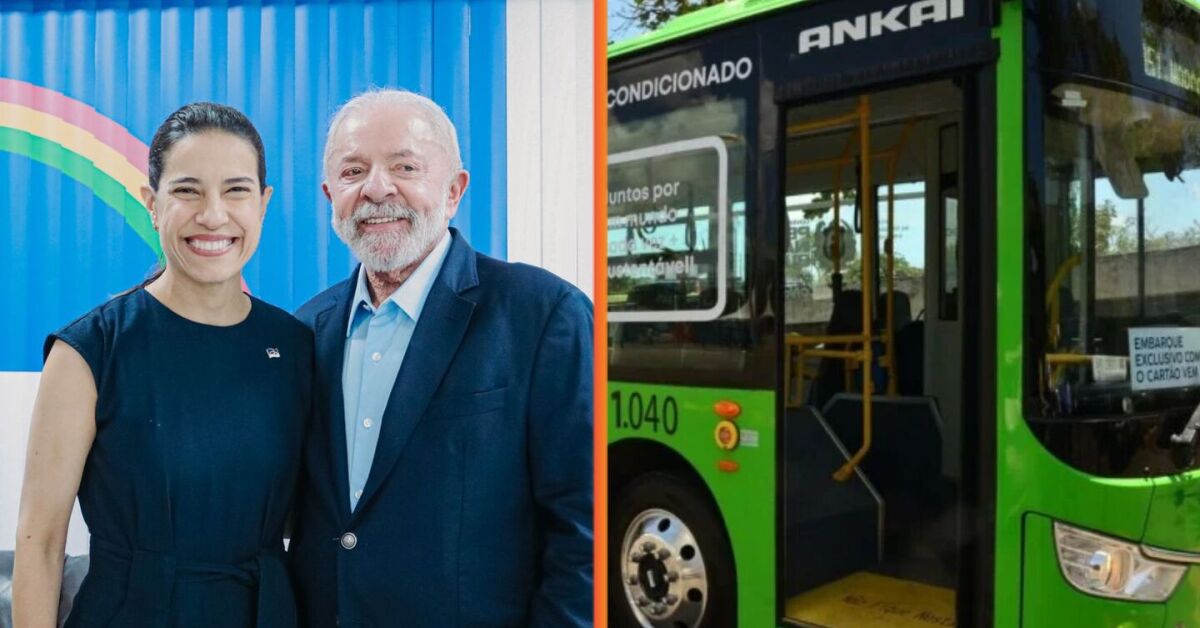 Raquel Lyra ao lado de Lula e ônibus elétrico. Fotos: Divulgação. Arte: Portal de Prefeitura