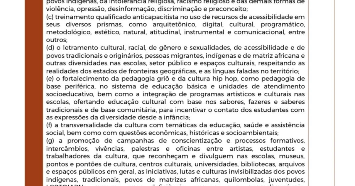 O novo Plano Nacional de Cultura propõe que os programas de educação e capacitação de professores sejam financiados pelos contribuintes, destinando uma parte do imposto de renda tanto de pessoas físicas quanto jurídicas para um fundo específico. Esse fundo tem como objetivo promover "a diversidade de linguagens, de segmentos e de expressões", além de garantir "participação acessível, inclusiva e universal".