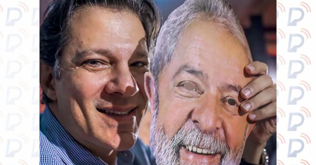 Fernando Haddad com máscara de Lula. Foto: Ricardo Stuckert/PR