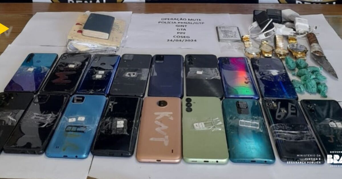 Celulares apreendidos em operação. Celulares apreendidos em operação.