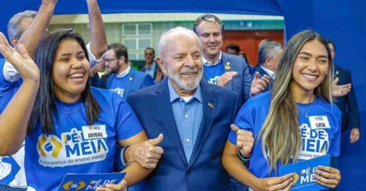 Lula abraçado com estudantes que recebem o Pé-De-Meia. Foto: Ricardo Stuckert/PR