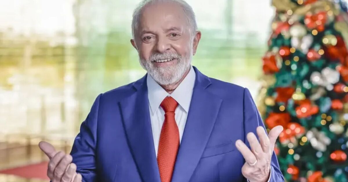 Lula e árvore de natal no fundo. Foto: Ricardo Stuckert