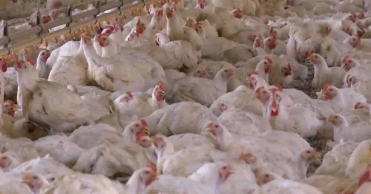 Gripe aviária: frangos em granja. Foto: Reprodução/TV Globo