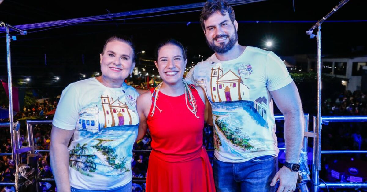 Raquel Lyra no bloco de Carnaval da prefeita Elcione em Igarassu. Foto: ivonildo Pedro