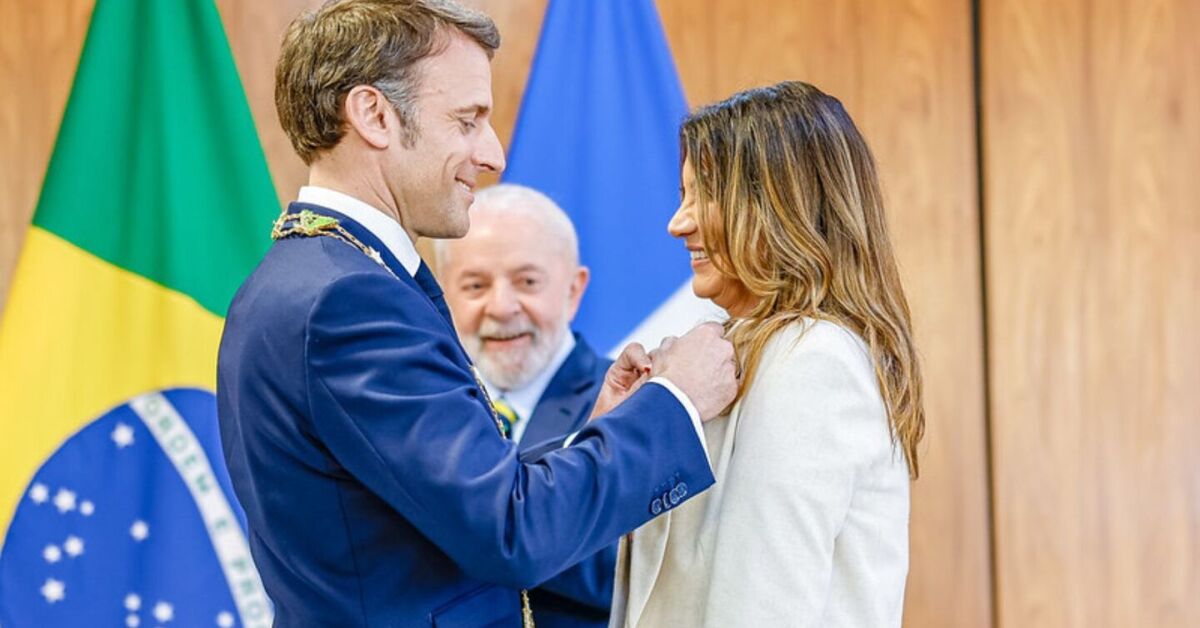 Emmanuel Macron e a primeira dama Janja. Foto: Ricardo Stuckert / PR
