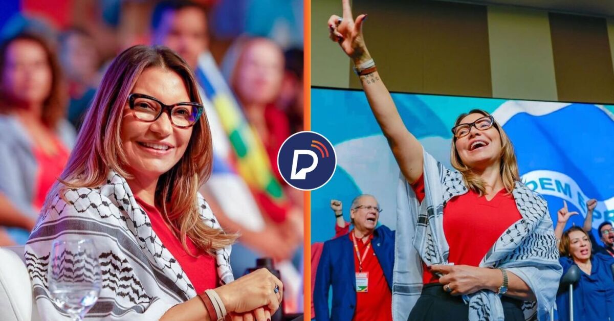 Durante o 17º Encontro Nacional do Partido dos Trabalhadores (PT), realizado no domingo, 3 de agosto, em Brasília, a primeira-dama Janja Lula da Silva chamou atenção ao utilizar um kufiya tradicional lenço árabe que se tornou símbolo da resistência palestina.
