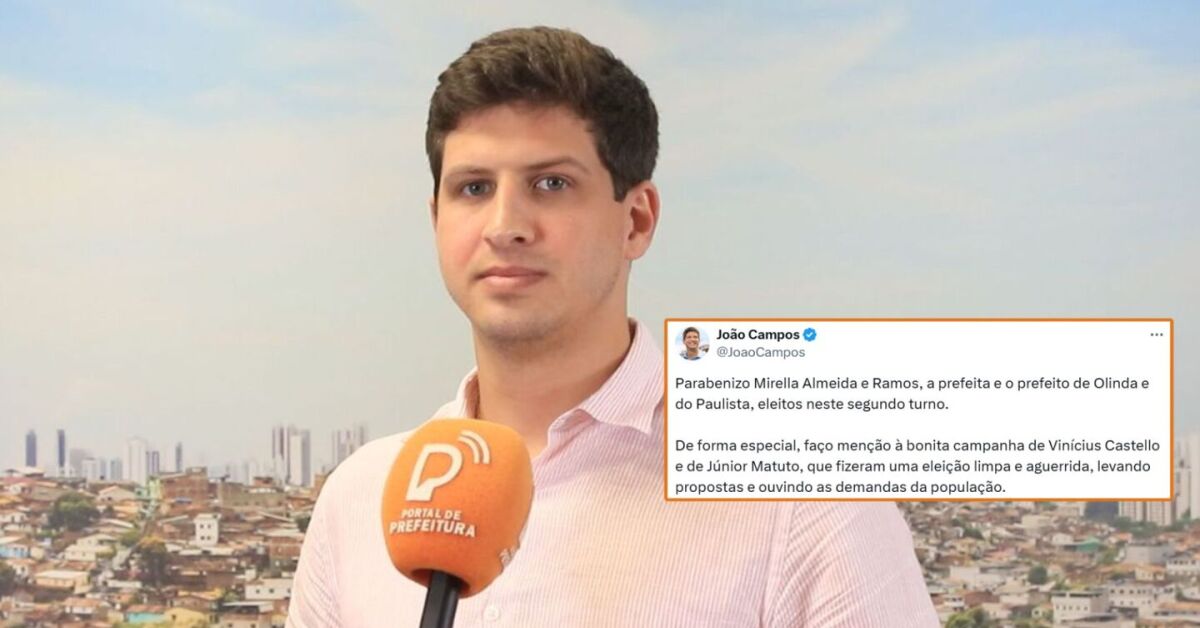 “Parabenizo Mirella Almeida e Ramos, a prefeita e o prefeito de Olinda e do Paulista, eleitos neste segundo turno”, escreveu João, que apoiou os adversários de ambos durante a campanha.