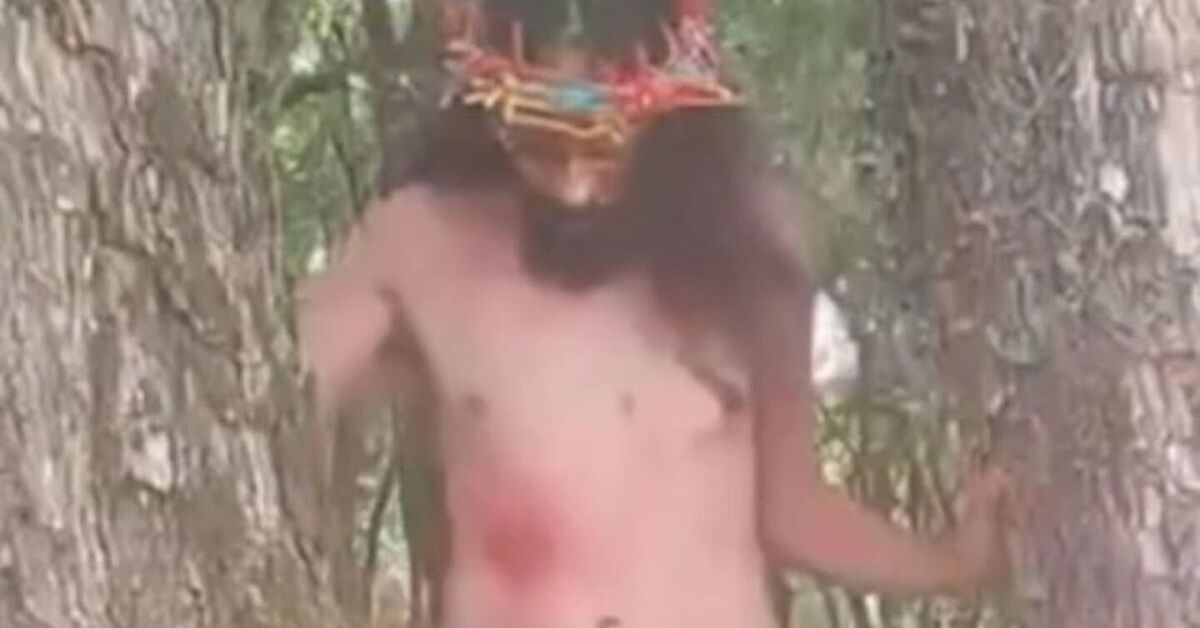 As imagens mostram o artista tirando toda a roupa, ficando apenas de sunga. Em seguida, ele se lança na multidão com os braços abertos, em referência à crucificação. A apresentação aconteceu no Bloco da Laje, um coletivo teatral carnavalesco fundado em 2011.