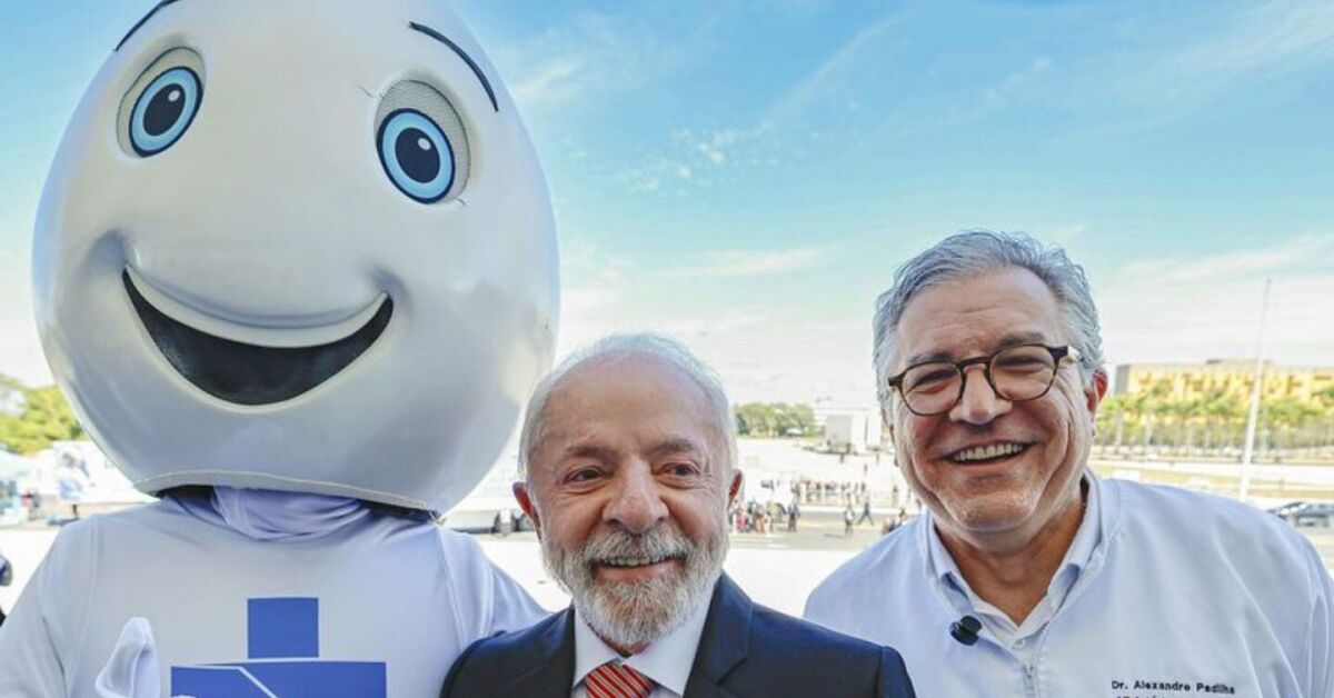 Mascote do SUS, Lula e ministro da Saúde. Foto: Ricardo Stuckert/PR