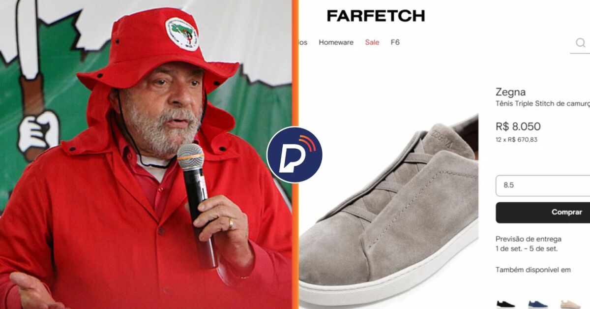Na quinta-feira (21), durante evento em Sorocaba (SP), o petista apareceu com um tênis da grife italiana Zegna. O modelo Triple Stitch, de camurça cinza, é vendido no site Farfetch por R$ 8.050.