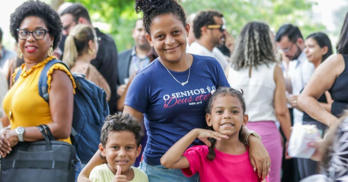 Mãe com duas crianças. Foto: Vinicius Lins/SAS