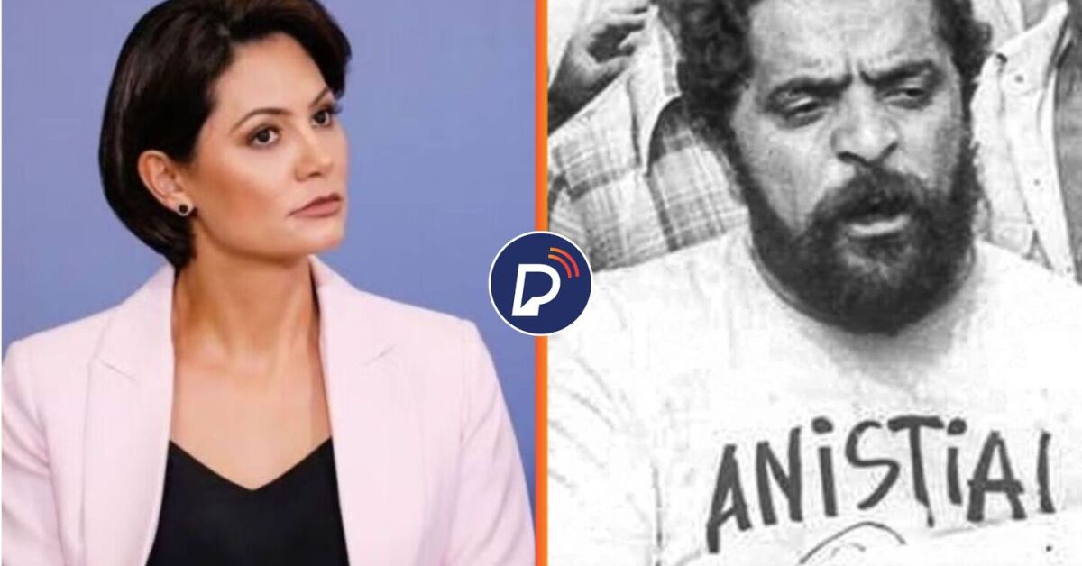 Michelle Bolsonaro compartilha foto antiga de Lula com camisa pedindo anistia Fotos: Reprodução / Redes Sociais
