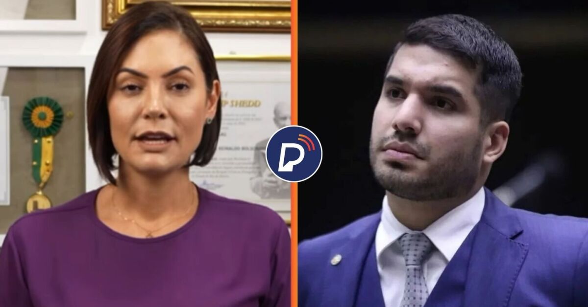 Michelle Bolsonaro critica André Fernandes. Foto: Arte/Portal de Prefeitura