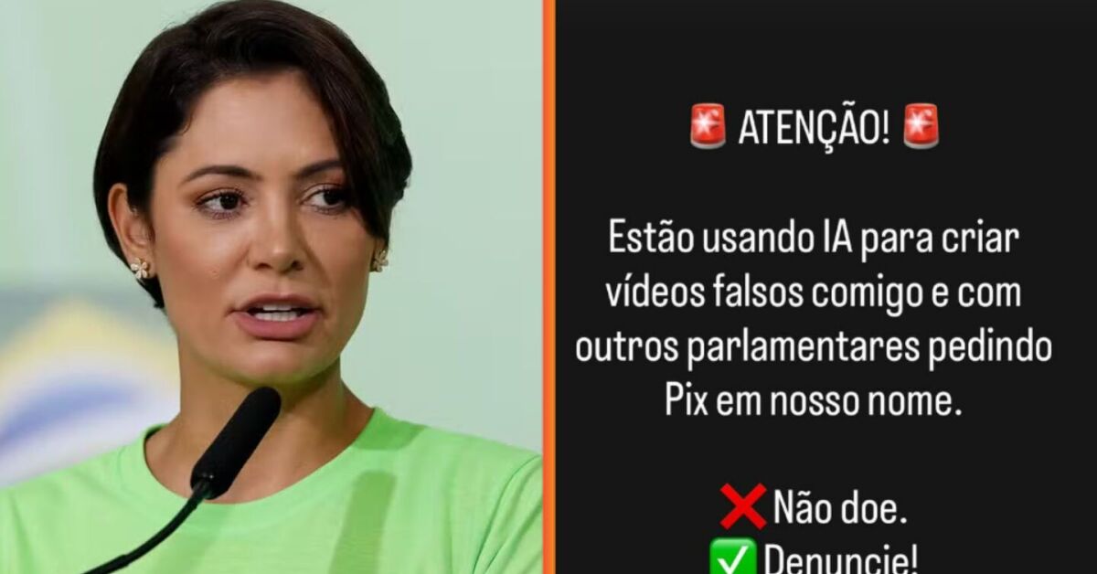 A ex-primeira-dama Michelle Bolsonaro usou suas redes sociais nesta quinta-feira, 25 de setembro, para denunciar crimes virtuais envolvendo o uso de sua imagem e de aliados parlamentares em campanhas falsas de arrecadação online.