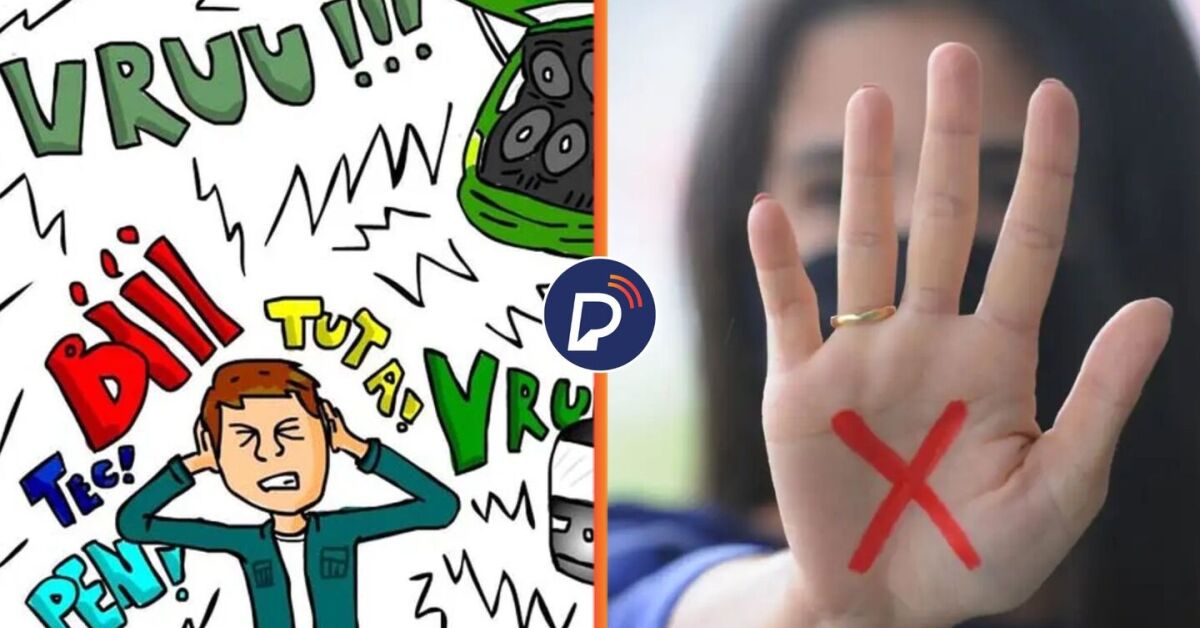 Poluição sonora e mulher estendendo a mão contra violência. Fotos: Google/Reprodução e Paulo H. Carvalho/Agência Brasília. Arte: Portal de Prefeitura