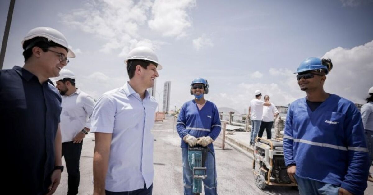 João Campos visitando um obra no Recife. Foto: Divulgação/PCR