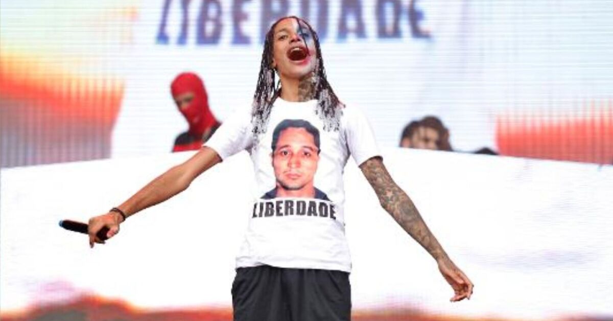 Oruam em show pedindo liberdade para seu Marcinho VP. Foto: Redes Sociais/Reprodução