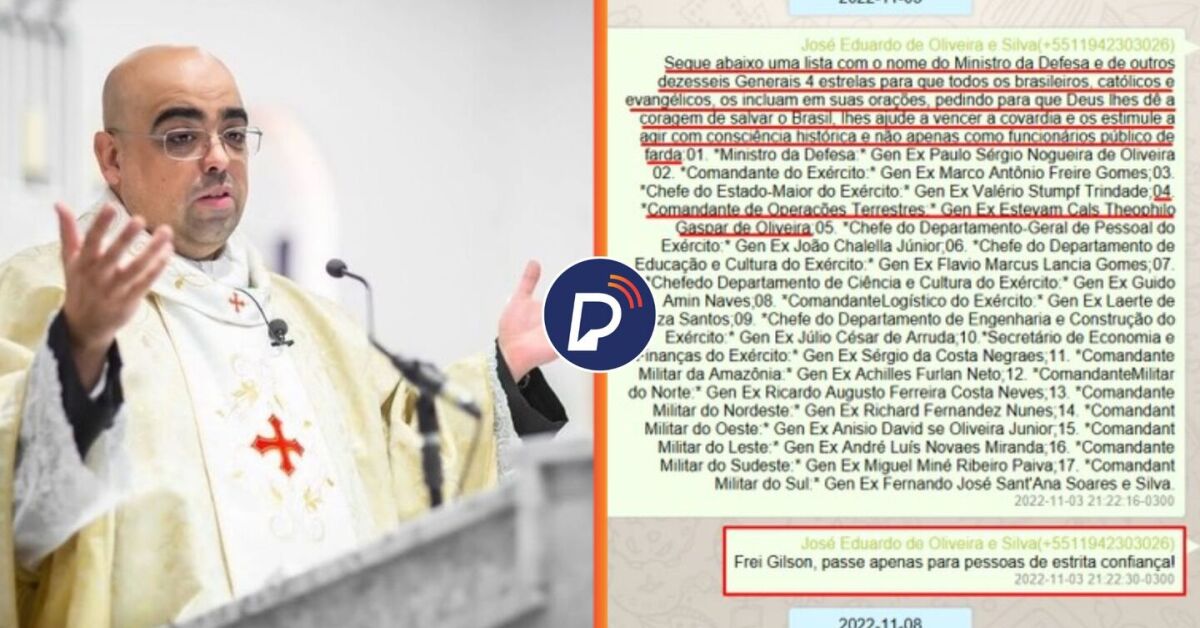 A investigação aponta também que a mensagem com o pedido de oração, enviada para um contato chamando de Frei Gilson, demonstra que José Eduardo, após a derrota do ex-presidente Jair Bolsonaro (PL) nas urnas, "já disseminava a ideia de um golpe de Estado apoiado pelas Forças Armadas, para manter o então presidente no poder e impedir a posse do governo eleito".