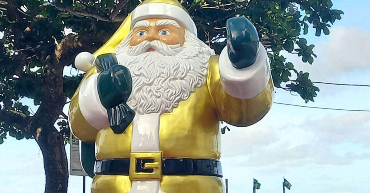 Papai Noel de Balneário Camboriú com cores mudadas. Foto: Reprodução