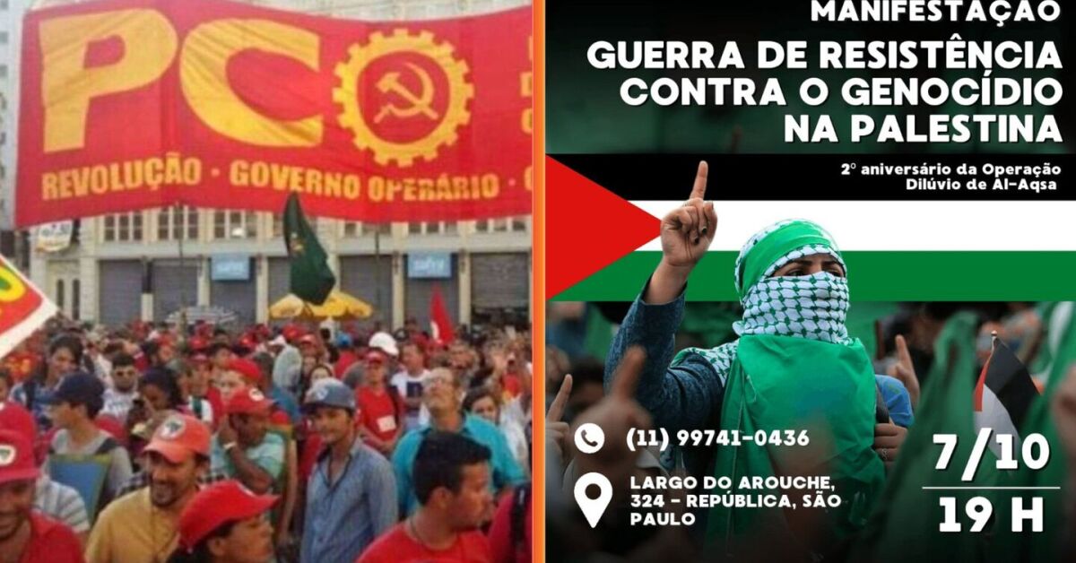 Dois anos após o ataque do Hamas a Israel, o Partido da Causa Operária (PCO) convocou uma manifestação para o dia 7 de outubro, às 19h, no bairro da República, região central de São Paulo, para celebrar a data.