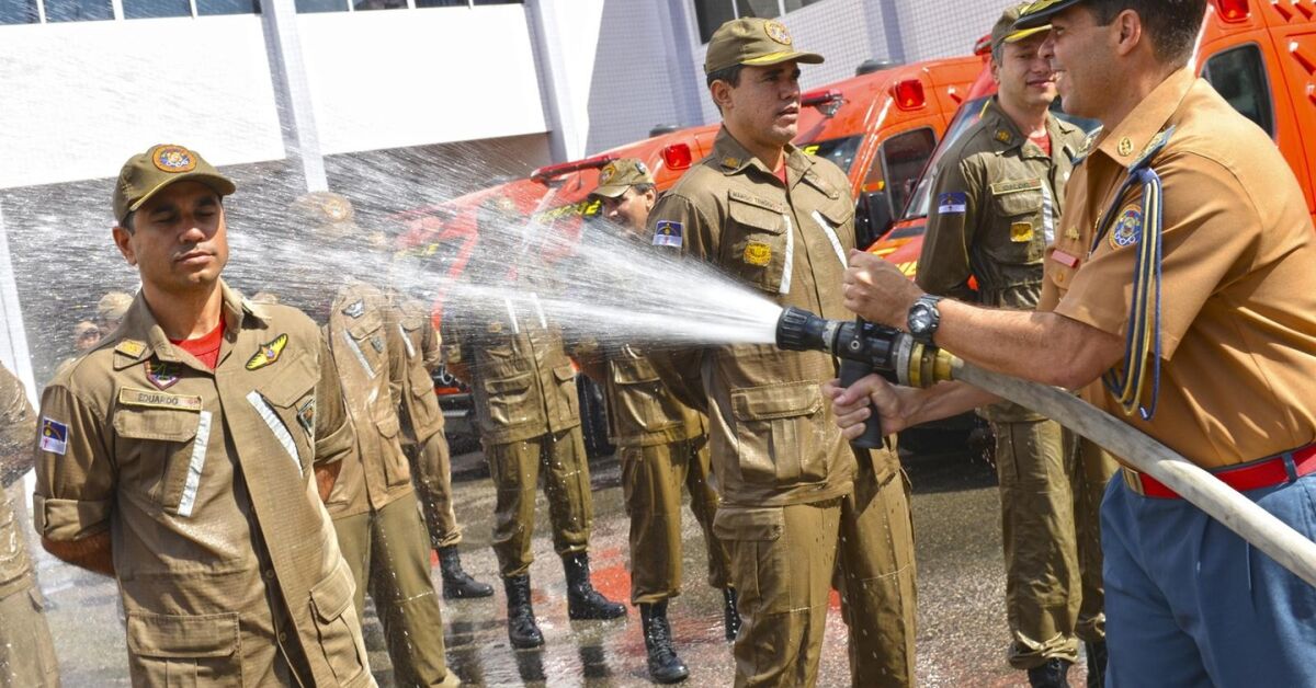 "batismo de mangueira", realizada para celebrar a aposentadoria ou promoção de um bombeiro Divulgação/Corpo de Bombeiros