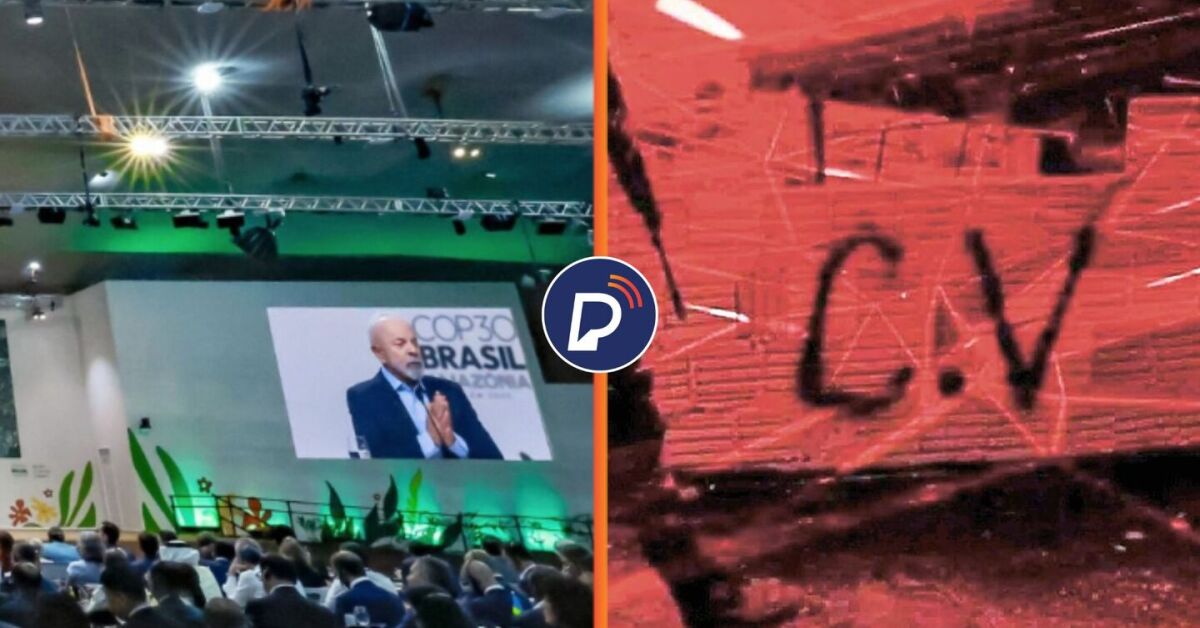 COP30 e pichação do Comando Vermelho. Fotos: Ricardo Stuckert/PR e Reprodução. Arte: Portal de Prefeitura