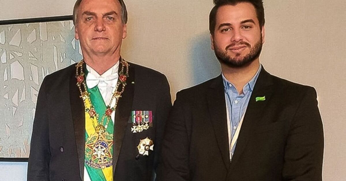 Filipe Martins, ex-assessor de Bolsonaro, ao lado do ex-presidente. Foto: Redes Sociais/Reprodução